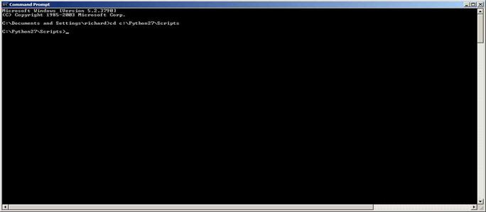Now you need to "cd" into the python scripts folder: type: cd c:\Python27\Scripts